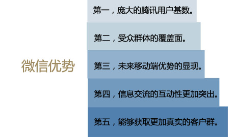 第五,能夠獲取更加真實的客戶群。 媒體這樣比喻“微信1萬個聽眾相當于新浪微博的100萬粉絲”,雖然有夸張成分,但卻有一定的依據性。