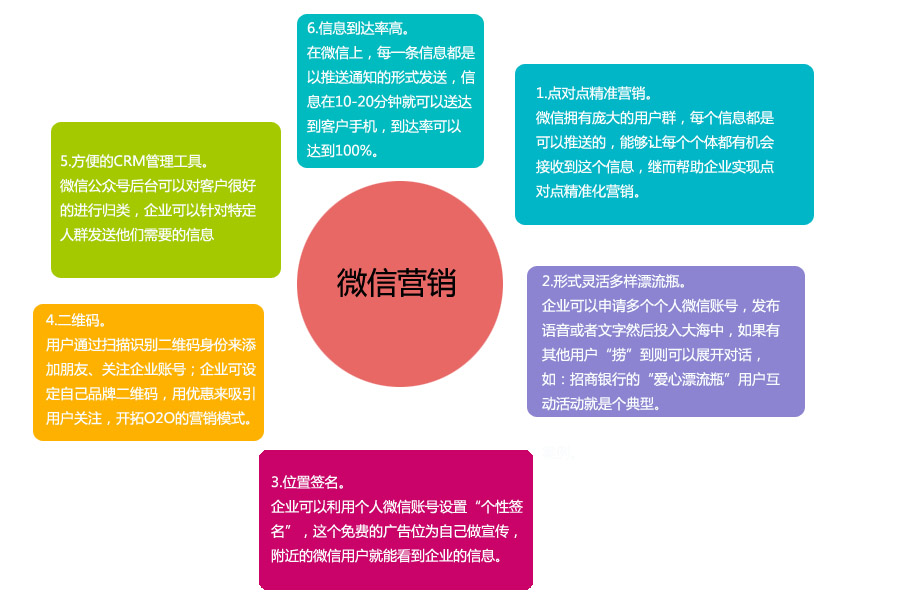 微信營銷是網絡經濟時代企業營銷模式的一種創新,是伴隨著微信的火熱而興起的一種網絡營銷方式。微信不存在距離的限制,用戶注冊微信后,可與周圍同樣注冊的“朋友”形成一種聯系,用戶訂閱自己所需的信息,商家通過提供用戶需要的信息,推廣自己的產品,從而實現點對點的營銷。
