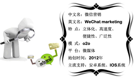 微信營銷主要體現在以安卓系統、蘋果系統的手機或者平板電腦中的移動客戶端進行的區域定位營銷,商家通過微信公眾平臺,結合轉介率微信會員卡展示商家微官網、微會員、微推送、微支付、微活動,已經形成了一種主流的線上線下微信互動營銷方式。